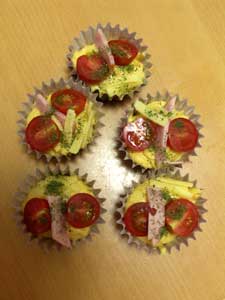 今回私が用意した物は、プチトマト、ハム、チーズ。でもこれは、自分が考えたものじゃなくて、単にパッケージの写真がそうだったから・・・。実際は、ハムじゃなくてスライスベーコンらしいです。