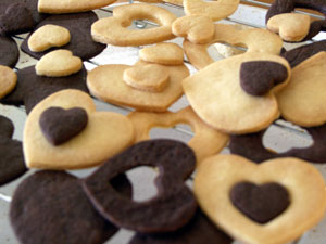 ・クッキー専用粉 ・粉糖 ・ビターチョコレート ・ココアパウダー ・フリーズドライいちご ・ハート抜き型(大と小)・ギフトラッピング袋(タイ付き)
