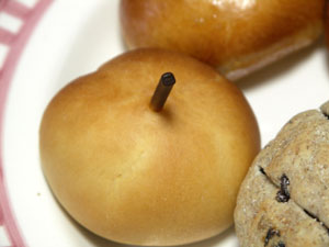 お持ち帰りしてきたのは、田舎パン1つとあんぱん2つ、りんごぱん1つ。