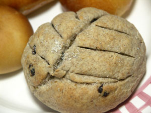 フランスパン専用粉とライ麦粉の生地で、くるみとカレンズが入ってます。