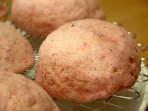 ピンク色で可愛い苺メロンパンができあがって満足だいっ!!