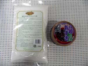 ネットで買った風と光のファクトリーの「簡単よもぎパンミックス粉」とスーパーで買ったはごろもの缶詰「八穀あずき」を使ってよもぎあんパンを作ってみました。