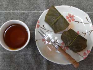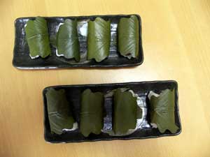 添付の柏の葉で包む。