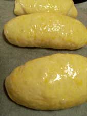 2次発酵終了後で焼く前。 → 焼き上がり。