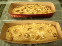 材料を混ぜて、型に流し入れ、くるみをちらしてオーブンで焼くだけ。キットを使ったマフィンやパウンド系は混ぜるだけだから簡単ね。クッキーは少し手間がかかるけど。