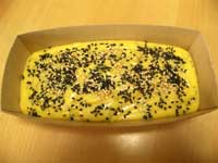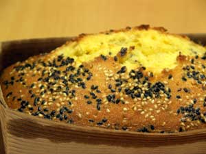 カップに入れて、残りのごまを中心にふりかけて、180度のオーブンで25分焼く。