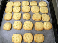 寝かした生地を切り分けて、180度のオーブンで15分焼くと出来上がり。